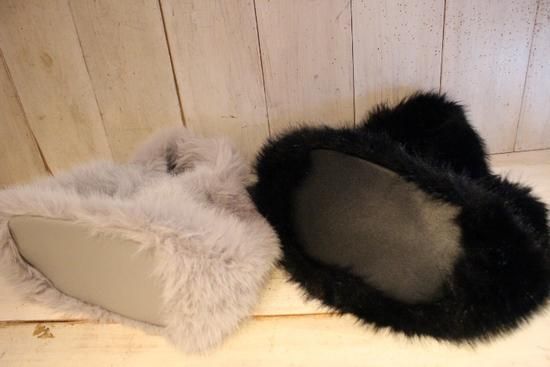 素材は縮れた長い毛足のチベットラム風フェイクファー。